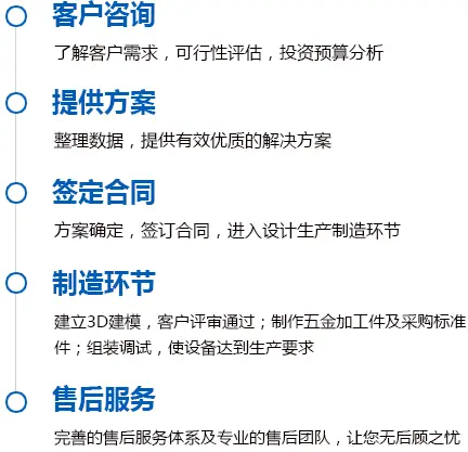按企业用户工艺要求量身设计、定制非标自动化机械设备,其操作方便、灵活、不单一,功能可按用户的要求而添加,可更改余地大。我司现已涉及的行业有电子、五金建筑、汽车、办公用品、医疗、玩具、塑胶、视觉检测等领域。