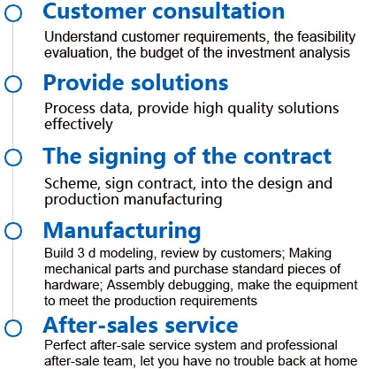 According to the technological requirements of enterprise customers tailored design, custom non-standard automation machinery and equipment, its operation is convenient, flexible, and not a single, functions can be added according to user requirements, and the can change the room is big. We are now involved in the industry have electronics, hardware construction, automobile, office supplies, medical, toys, plastics, visual inspection, etc.